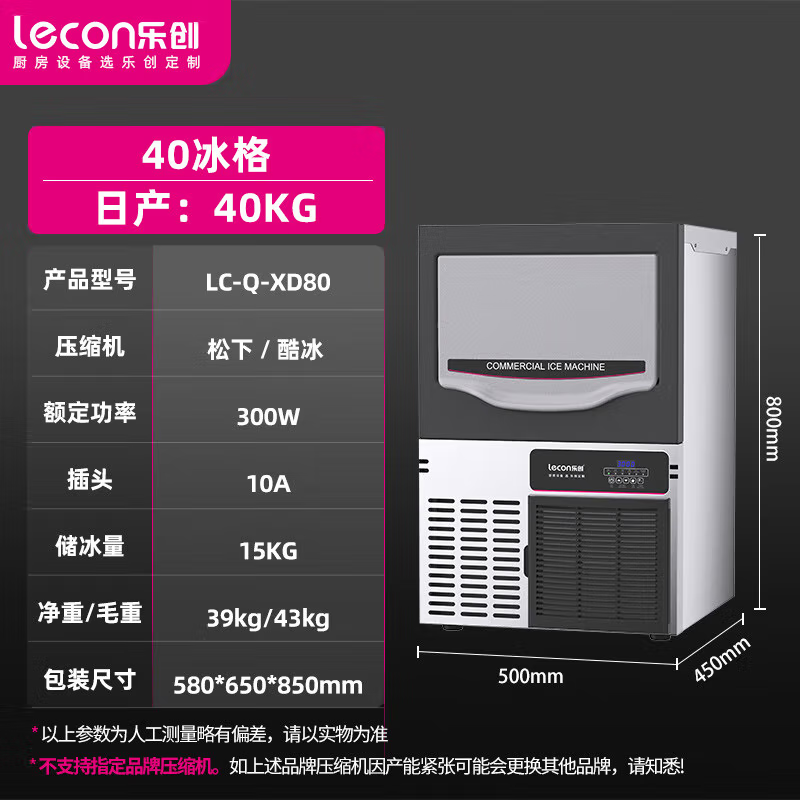 乐创(lecon)制冰机商用全自动制冰机大型大容量酒吧KTV奶茶店冷饮店造冰机