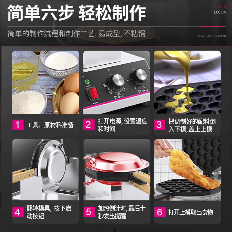 乐创港式鸡蛋仔机商用qq蛋仔机不粘锅家商两用电热章鱼小丸子华夫饼舒芙蕾鸡蛋饼机器烤饼机